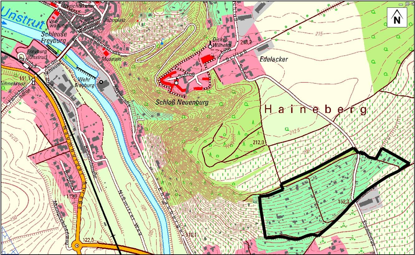 163/1 teilweise; 165/2; 165/4 teilweise; 165/5; 167/1 teilweise; 167/2 teilweise; 168/1 teilweise 168/2; 169/1; 169/3; 169/4 teilweise; 171/1 teilweise; 171/2; 171/4; 171/5; 171/6; 172/1 teilweise 172/3; 172/4; 172/5; 173/4; 173/5; 174/1; 174/2; 174/3; 174/4; 176/2; 176/3; 176/4; 176/5; 176/7; 176/9; 176/10 176/11; 176/12; 176/13; 176/14; 176/15; 176/16; 177/1; 177/2; 178/1; 178/2; 179/2; 179/3; 179/4; 179/6; 179/7; 180/1; 180/2; 180/3; 180/4; 180/5; 180/6; 181; 229/1; 249/1 teilweise; 255/1; 255/2; 256/2; 256/3; 256/4; 256/5; 258 (neu: 428); 259/3; 259/4; 259/6; 259/7; 259/8; 259/9 (neu: 429); 267 teilweise; 268 teilweise; 269; 272; 273 teilweise; 281 teilweise; 290 teilweise; 291 - 299; 300 teilweise; 308/228 und 402/241, Flur 7 Gemarkung Freyburg.